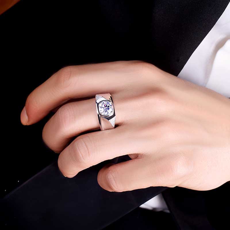 Nhẫn Cưới Chất Liệu Thép Titanium Mạ Bạc 925 Đính Đá Pha Lê