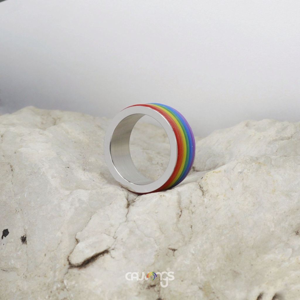 Nhẫn cầu vồng lgbt thép titan không rỉ N03 - 9mm - Đen - Bạc