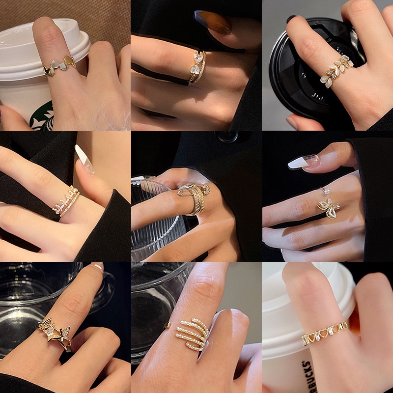 Nhẫn Hở Đính Đá Zircon Ngọc Trai Nhân Tạo Thanh Lịch Dễ Điều Chỉnh Phong Cách Hàn Quốc Cho Nữ