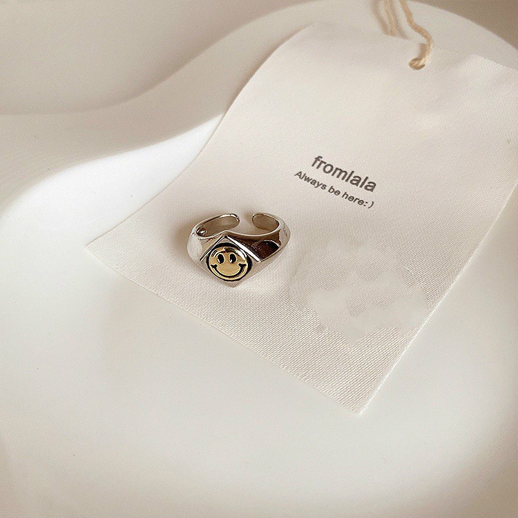 Nhẫn hở hình mặt cười màu sắc đơn giản phong cách Hàn Quốc cổ điển