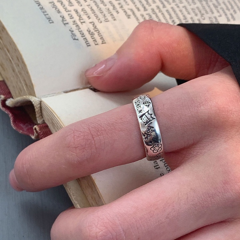 Nhẫn Hở Họa Tiết Graffiti Phong Cách Hàn Quốc Thời Trang Cho Nam Và Nữ