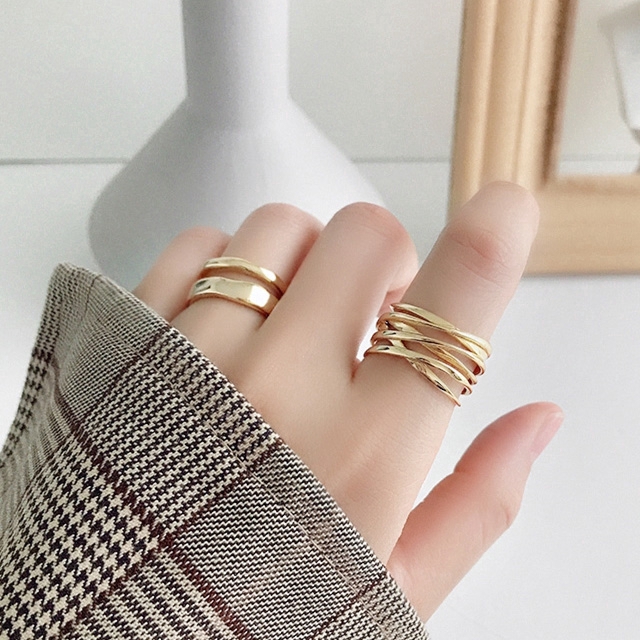 Nhẫn hở nhiều lớp phong cách cổ điển tối giản có thể điều chỉnh kích cỡ
