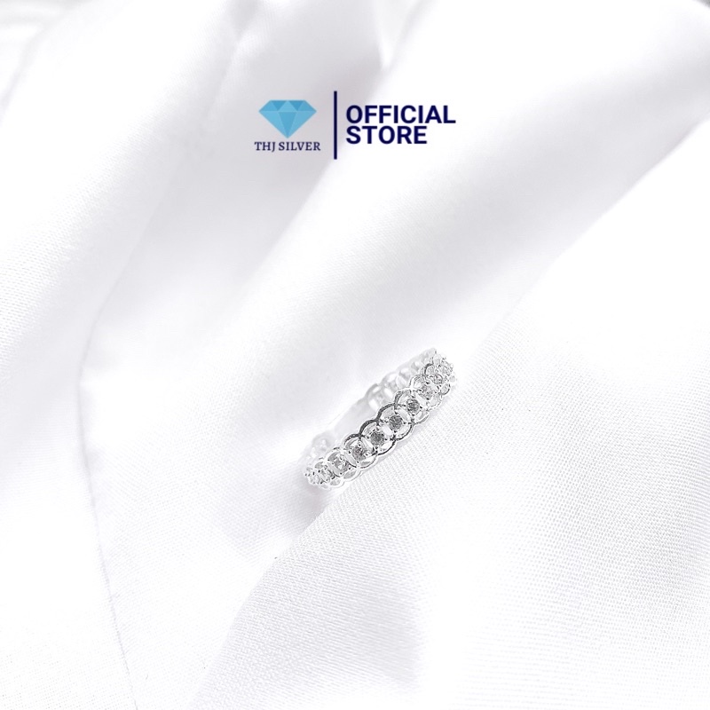 Nhẫn kim tiền đính đá nhỏ , chuẩn bạc ta -THJ SILVER