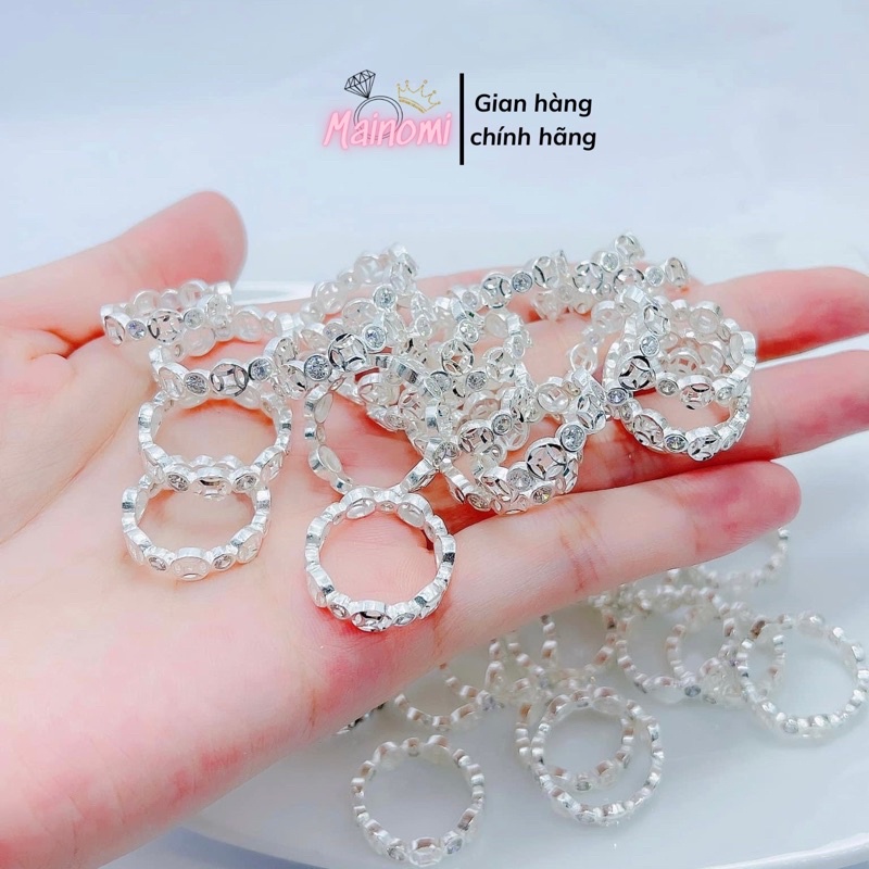 THÔNG TIN SẢN PHẨM NHẪN BẠC MAINOMI - Chất liệu Bạc ta đảm bảo tuổi bạc từ 8,5 tuổi -> 9,9tuổi (Tuổi bạc đẹp cảm kết của thợ bạc và xưởng bạc) - Sản xuất theo công nghệ Ý kết hợp thủ công tại làng nghề truyền thống lâu đời. - Độ tuổi bạc Đẹp + Chuẩn có giá trị mua bá