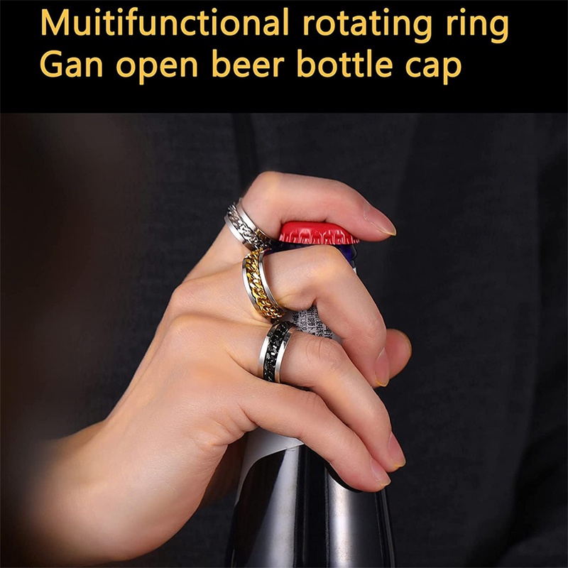 Nhẫn mở nắp chai bằng thép titan phối dây xích xoay được thời trang cá tính dành cho nam nữ
