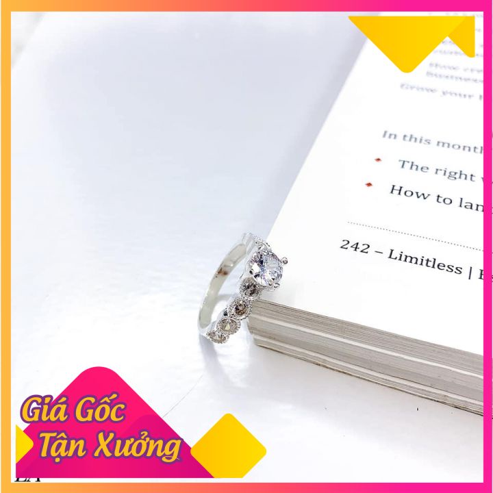 Nhẫn Đính Hôn Bạc 925 Đính Đá Zircon Thanh Lịch Thời Trang Cho Nữ