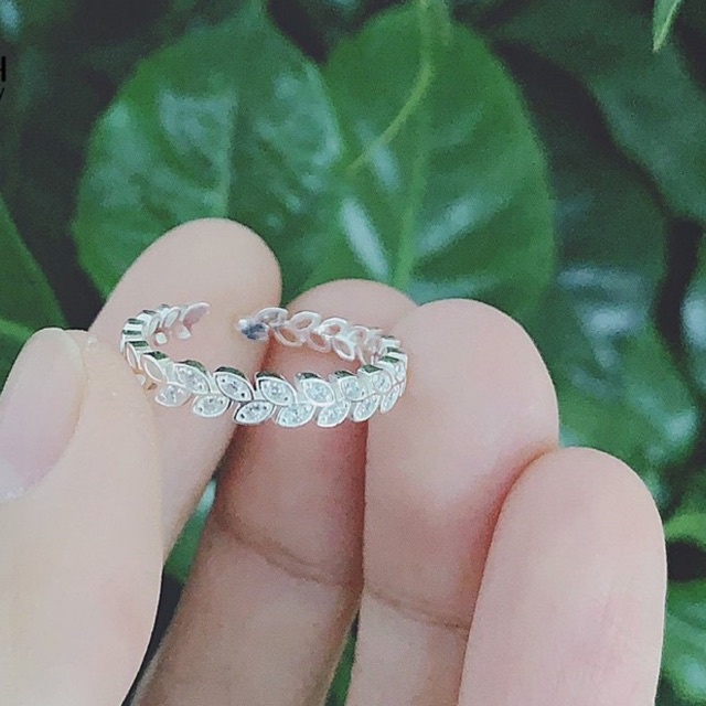 Nhẫn nữ lá nguyệt quế nạm đá kiểu hở dễ đeo chuẩn bạc ta