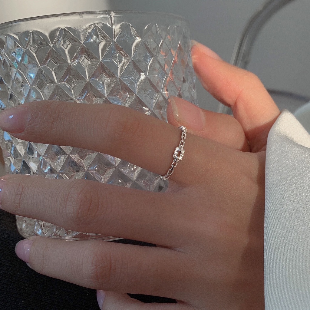 Nhẫn Nữ Mặt Vuông Cách Điệu Đính Đá Freesize Cỏ Thể Tùy Chỉnh Theo Tay Hàng Thiết Kế Mẫu Mới
