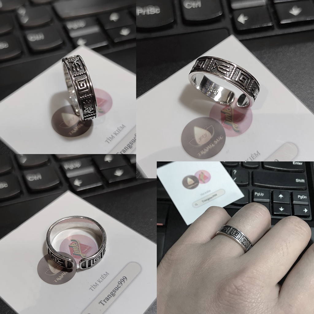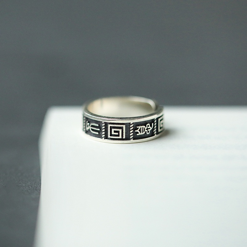 Nhẫn Nam nữ Làm như cũ Vòng đuôi Hán tự Hợp kim đồng mạ bạc Bạc Thái Phong cách Nhẫn có thể điều chỉnh Lớn NH-193