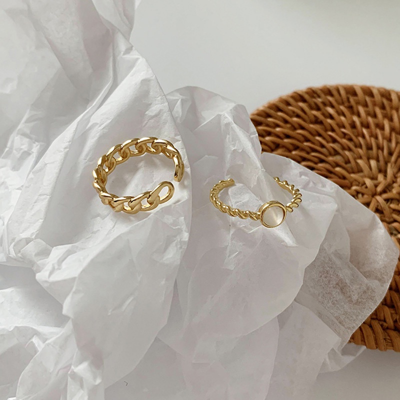 Nhẫn thép titan đính đá opal dạng hở điều chỉnh được thời trang dành cho nữ