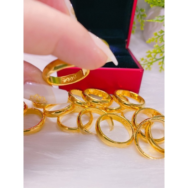 Nhẫn trơn 2 chỉ dát vàng 24 xi cao cấp mẫu mới siêu bền màu nhẫn có khắc 4 số 9