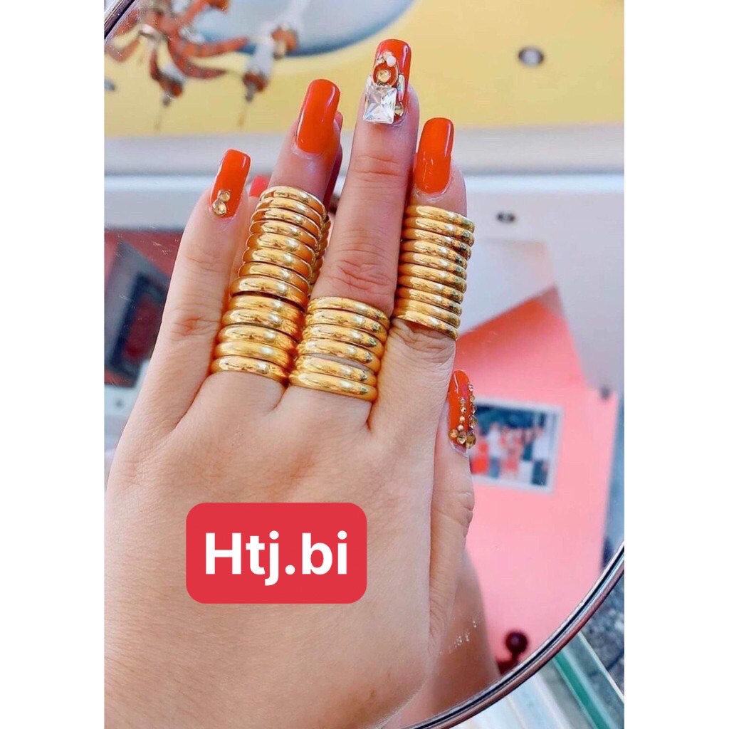 Nhẫn trơn mạ vàng loại 1 chỉ đóng mộc 9999 kiểu dáng đơn giản nam nữ đều đeo được htj