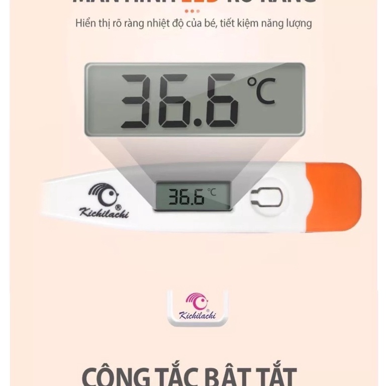 Nhiệt Kế Điện Tử Đầu Cứng Có Báo Hiệu Khi Sốt Kichilachi Cho Bé Kẹp Nách An Toàn Đo Chuẩn Xác