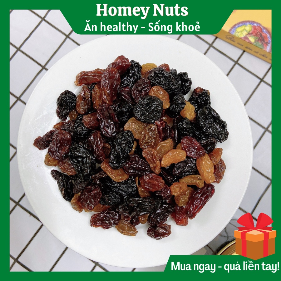 Nho khô Chile mix 3 màu chua chua ngọt ngọt - Date mới, BST trái cây sấy dẻo Homey Nuts