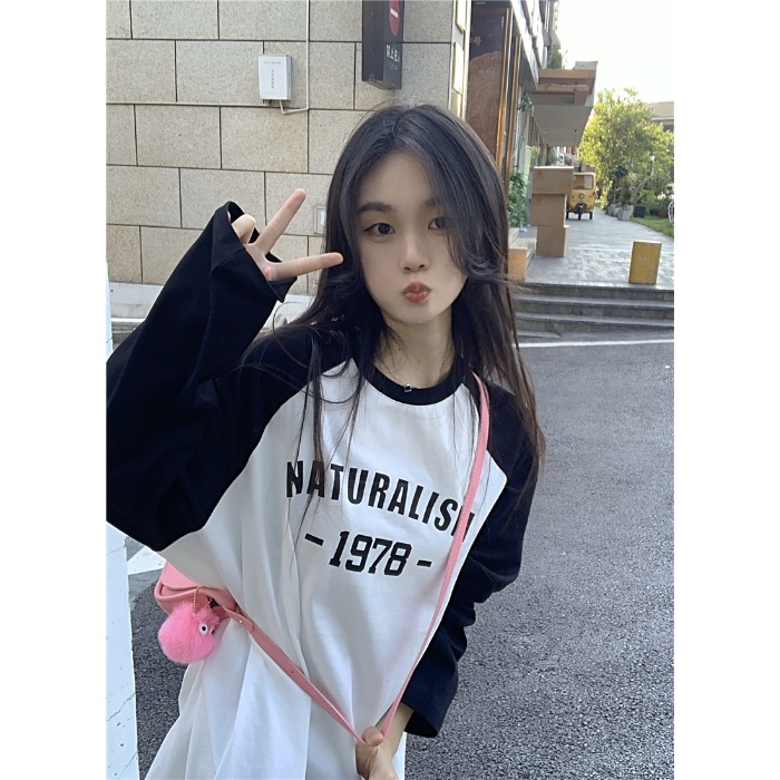 NRVP Áo Thun Nữ Oversize 100% Cotton Tay Dài Cổ Tròn Phong Cách Hàn Quốc Mới