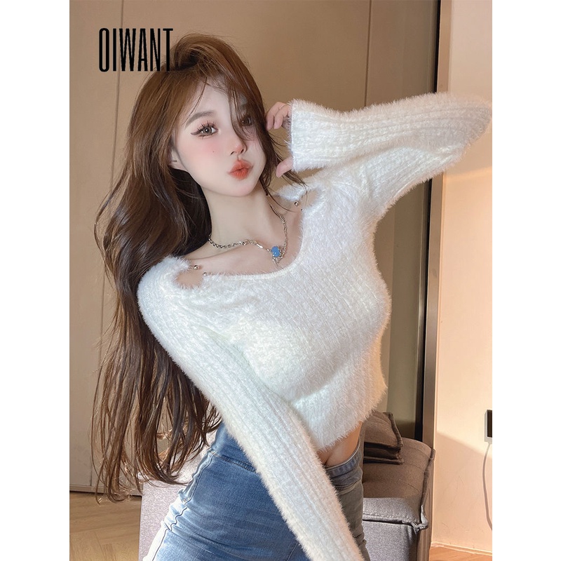 Oiwant Áo sweater Dệt Kim Tay Dài Cổ Tròn Mềm Mại Màu Trơn Thời Trang Quyến Rũ Dành Cho Nữ 2023