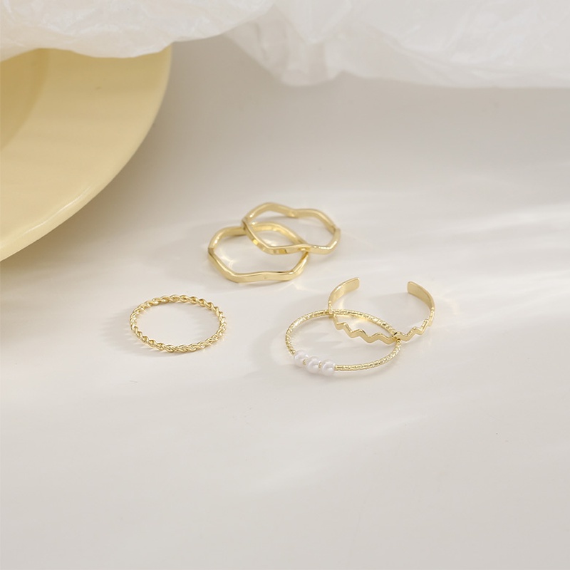 PAPAOZHU Bộ 5 Nhẫn Ngọc Trai Vàng Siêu Mỏng Thời Trang Hàn Quốc Cho Nữ