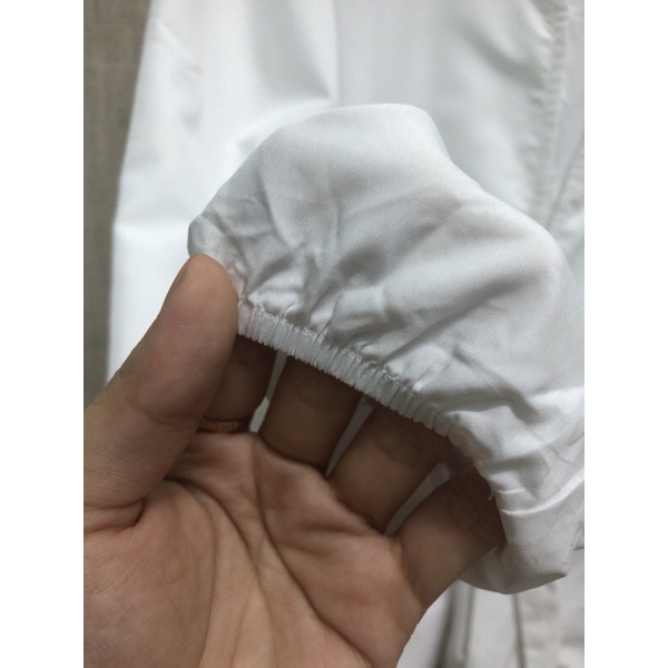 Áo kiểu nữ cổ sơ mi phối tay phồng màu xanh ngọc mới 95% - thanh lý pass áo 2hand