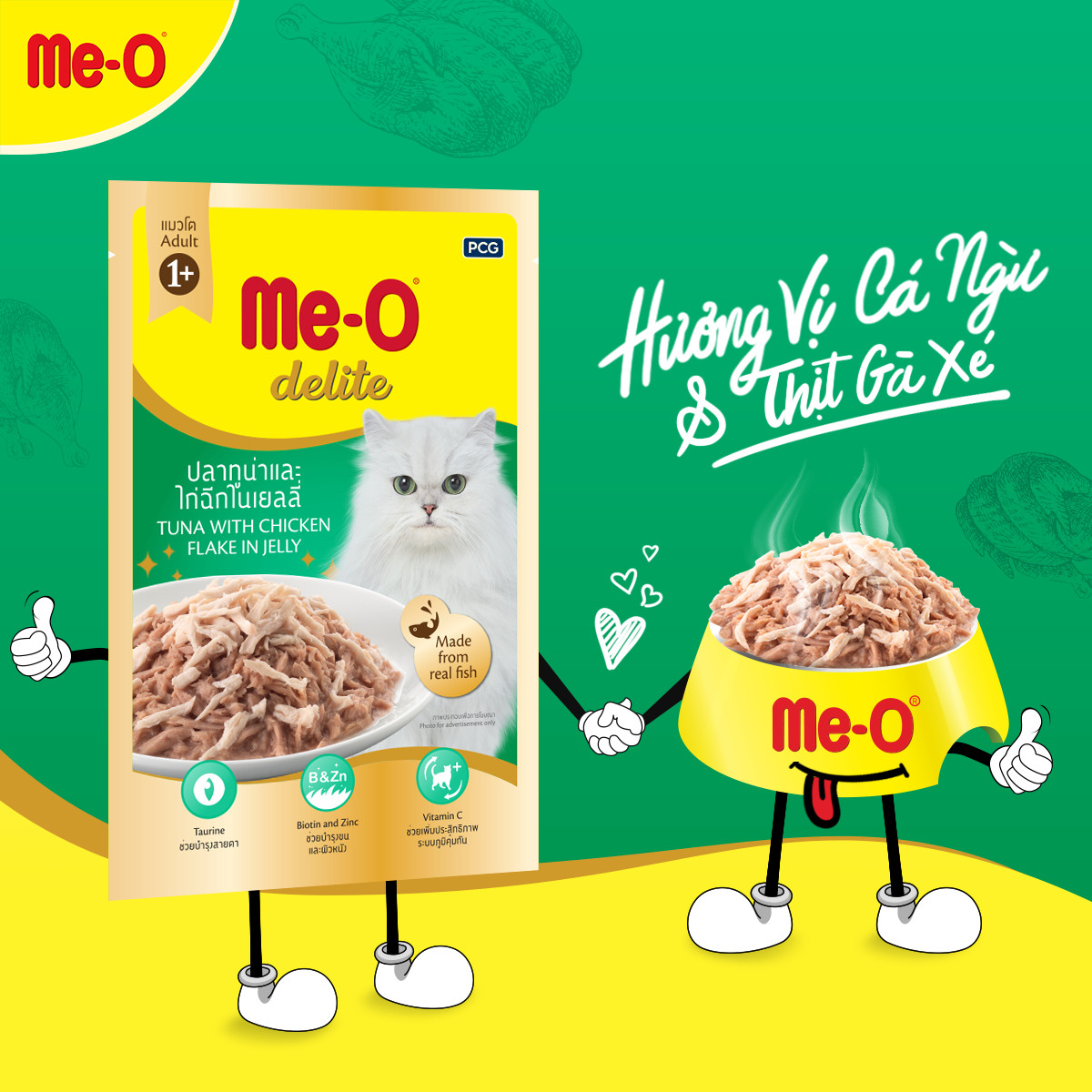 Tin khẩn cấp, cứ 100 Boss ăn pate Me-O Delite thì hết 99,5 Boss báo rằng không thể “dứt ra” vì quá ngon!! Vì vậy các Sen đừng dại dột mà đánh mất liêm sỉ chỉ để đổi lấy sự quan tâm của Boss, hãy dùng cực phẩm Me-O Delite để thu phục ngài ấy nhé Thức Ăn Dinh Dưỡng Pate Cho Mèo Me-O Delite Gói 70g THÔNG TIN SẢN PHẨMMe-O Delite cung cấp thức ăn ngon bổ dưỡng, có đầy đủ các thành phần chất lượng cao, cho những chú mèo yêu quý của bạn. Chúng tôi sử dụng phần tốt nhất của cá tươi để phục vụ sự thèm ăn của mèo. Bạn có thể tự tin rằng mèo của bạn sẽ trở nên hạnh phúc và khỏe mạnh. Nhiều loại hương vị có sẵn và sẵn sàng là một phần trong bữa ăn hoàn hảo của mèo. Khi mèo của bạn dùng thử Me-O Delite, chúng tôi đảm bảo rằng chúng sẽ yêu cầu nhiều hơn. Chúng tôi khuyên bạn nên trộn Me-O Delite với thức ăn cho mèo khô Me-O vì nó sẽ cao cấp cho bữa ăn của mèo. Bữa ăn của mèo sẽ không còn là bữa ăn bình thường nữa. Pate Me-O Delite với chiết xuất từ thịt cá ngừ mang đến hương vị đại dương ngập tràn trong từng miếng cắn đã chinh phục khẩu vị của 3 chuyên gia ẩm thực Boss khó tính thế nào? Cùng khám phá 4 hương vị pate thơm ngon khó cưỡng: (Xanh Dương) Tuna in jelly: Vị cá ngừ trọn vẹn, ngọt thanh như đang thưởng thức cá tươi.(Hồng) Tuna with bonito in jelly: Vị cá ngừ kết hợp cùng cá ngừ sọc dưa cho khẩu vị thăng hoa .(Đỏ) Tuna with crab stick in jelly: Vị cá ngừ hòa quyện cùng thanh cua càng nhai, vị ngon càng lan tỏa.(Xanh Lá) Tuna with chicken flake in jelly: Vị cá ngừ và thịt gà xé cắn vào ngập thịt bùng nổ vị giác Boss. Đặc biệt Me-O Delite còn có nhiều công dụng tuyệt vời khiến Boss khó lòng từ chối: - Chiết xuất từ cá ngừ thật.- Biotin/Zinc: Giúp làn da, bộ lông khỏe mạnh.- Vitamin C: Giúp tăng cường hệ miễn dịch.- Taurine: tăng cường hệ miễn dịch & thị giác.----------Giá sản phẩm trên Tiki đã bao gồm thuế theo luật hiện hành. Bên cạnh đó, tuỳ vào loại sản phẩm, hình thức và địa chỉ giao hàng mà có thể phát sinh thêm chi phí khác như phí vận chuyển, phụ phí hàng cồng kềnh, thuế nhập khẩu (đối với đơn hàng giao từ nước ngoài có giá trị trên 1 triệu đồng).....