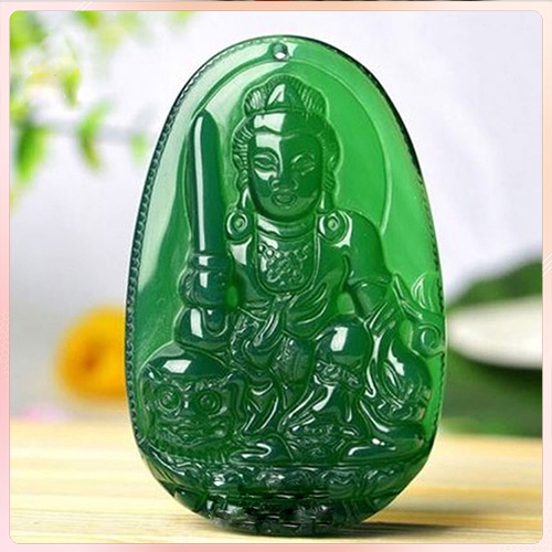 Phật bản mệnh phong thủy hợp 12 con giáp - mặt dây chuyền hình phật đá màu xanh lá - tặng kèm dây dù đeo và hộp đựng