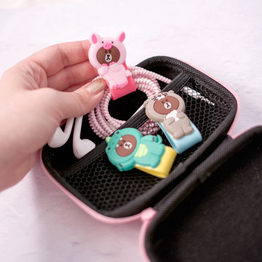 Phụ Kiện Dây Cáp Sạc Và Tai Nghe mini Họa Tiết Hoạt Hình Dễ Thương Nhỏ Gọn
