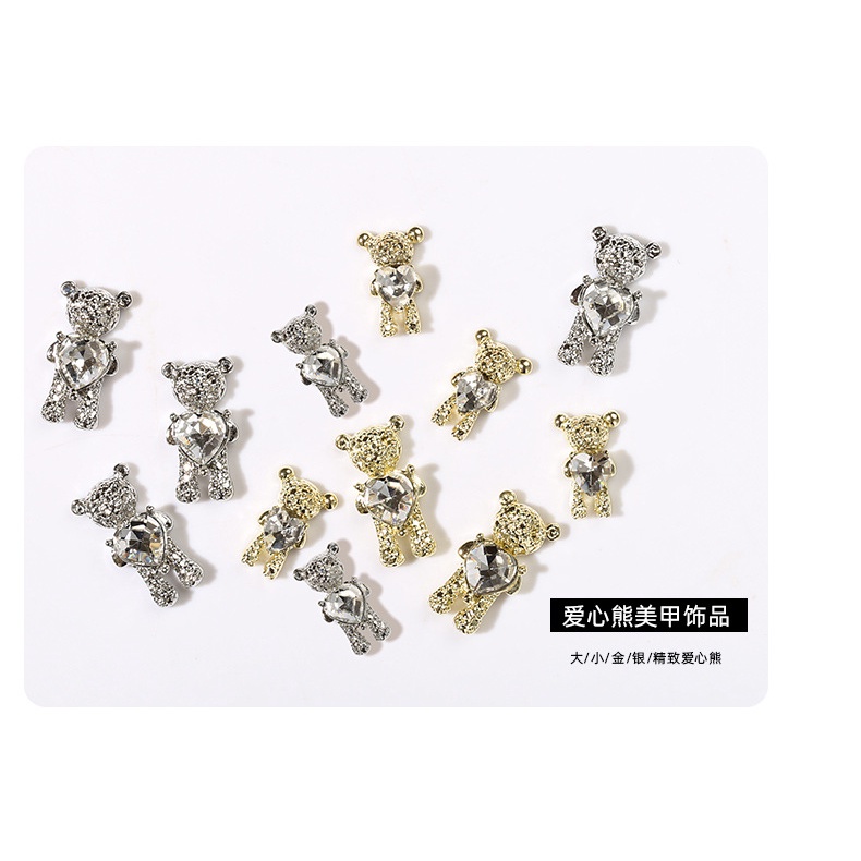 Phụ kiện trang sức móng tay nghệ thuật bằng kim loại hình gấu dễ thương