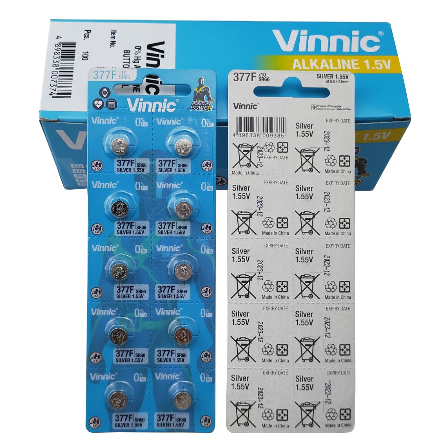 Pin đồng hồ đeo tay Vinnic 377 / SR626SW / SR66 / 377F • Chất liệu: Pin Silver Oxide / Pin oxide bạc - Kí hiệu là SR (Khác với pin Alkaline LR) • Hãng: VINNIC • Model: 377 / SR626SW / SR66 / 377F • Các mã tương đương: 626 SB-BW SB-AW 280-72 280-39 177 V377 565 606 GP377 SR626W SR626SW SR66 D377 LR626 LR66 AG4 • Điện thế: 1.55 V • Sử dụng cho đồng hồ đeo tay, các thiết bị điện tử... • Kích thước: 6 x 2.6mm • Hình thức đóng gói: vỉ 10 viên - giá tùy theo số viên • Xuất xứ: VINNIC chính hãng, sản xuất tại Trung Quốc • HSD: Được in ở mặt sau mỗi viên pin, hàng của shop date mới liên tục #Vinnic #377 #SR626SW