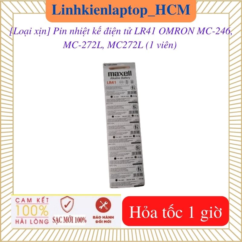 [Loại xịn] Pin điện tử LR41 dành cho nhiệt kế OMRON MC-246, MC-272L, MC272L ,LR41 (1 viên) *Thông tin sản phẩm [Loại xịn] Pin điện tử LR41 dành cho nhiệt kế OMRON MC-246, MC-272L, MC272L ,LR41 (1 viên) - Loại pin : Pin lithium - Volts : 1.5V - Code : LR41 - Sử dụng cho máy tính, laptop, các thiết bị điện, điện tử, CMOS, Remote, v,v... pin#nhietke#dientu#omronmc-246#mc-272l#mc272l