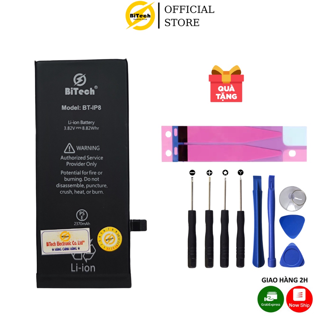 Pin Dung Lượng Cao BiTech Là Sản Phẩm Của " BiTech Electronic Co. Ltd ® " . Thương hiệu đã được đăng ký và bảo hộ thương hiệu tại "CỤC SỞ HỮU TRÍ TUỆ VIỆT NAM " . Sản phẩm của BiTech đáp ứng đầy đủ yêu cầu Tiêu chuẩn chất lượng trong nước và quốc tế ( CE & RoHS, UN 8.3, MSDS, ISO 9001:2015 và QCVN 101:2016/BTTTT - Mục 2.6. ) -Thương hiệu : BiTech - Mã pin : BT-IP8G - Dung lượng pin: 2370 mAh - Công nghệ pin Li-on Polyme an toàn tuyệt đối,chống cháy nổ . - Thời gian sạc đầy pin: 2h-3h (tùy bộ sạc và dung lượng pin cao hay thấp mà thời gian sạc có thể lâu hơn) *CHÍNH SÁCH BẢO HÀNH " BiTech Electronic Co. Ltd ® " áp dụng CHÍNH SÁCH BẢO HÀNH TOÀN DIỆN : HOÀN TRẢ 100% PIN LỖI CHO CÁC ĐỐI TÁC , KHÁCH HÀNG . - Bảo hành 12 tháng 1 đổi 1 : TOÀN QUỐC - Sau 12 tháng hoặc 500 chu kỳ sạc ( tuỳ mốc nào đến trước ) - Pin chai quá 80% sẽ được ĐỔI MỚI - Phồng Pin , Phù Pin , Chai Pin : ĐỔI MỚI - Nếu Pin Rách đứt cáp , thủng rách cell , gãy pin do quá trình vận chuyển , khách hàng phải báo ngay cho công ty ( kèm hình ảnh ) *Sản phẩm chính hãng BiTech bao gồm : -Vỏ hộp thương hiệu BITECH - Pin BiTech - Hộp chống sốc , chống va đập - Tem hàng chính hàng + tem bảo hành - Hướng dẫn sử dụng -Bộ quà tặng gồm : Bộ tô vít + Siu dán pin ( Miếng dán cố định pin ) *Hướng Dẫn Sử Dụng - Sạc pin đầy trước khi sử dụng ( Khuyến Nghị Sạc từ 6-8 tiếng ) - Pin mới chưa ổn định , pin sẽ hoạt động ổn định sau 3-5 chu kỳ nạp/xả . - Những lần sạc đầu tiên không để pin cạn dưới 10% . - Pin sạc lâu đầy thì bỏ chọn " Sạc pin tối ưu hóa " *HÀNG KHÔNG BẢO HÀNH - Pin Đứt Cáp , Rách Cáp - Pin Thủng Cell , Rách Cell - Gãy thân Pin - Pin Sạc quá 500 lần trong vòng 12 tháng . Chịu Trách Nhiệm Sản Xuất : "Bitech Electronic Co. Ltd ® " Địa chỉ : 71B Láng Trung - Láng Hạ - Đống Đa - Hà Nội . Fanpage : https://www.facebook.com/bitechelectronic.vn/ Website : http://bitechelectronic.vn/ Hotline : 0979.361.698-0962.06.09.20