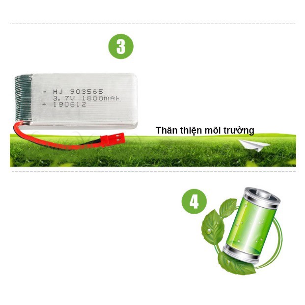 Mô Tả Sản Phẩm :Pin Máy Bay Điều Khiển Dung Lượng Cao 3.7V 1800mAh 25C Pin Dung Lượng 3.7V 1800mAh 25C chuyên dụng dòng máy bay điều khiển chuyên dụng phù hợp JJRC quad A6.. và các sản phẩm tương tự khác Tăng thời gian trải nghiệm thú vị Trọng lượng rất nhẹ, dễ dàng thay thế Chất lượng và độ bền cao cho khả năng sạc xả nhiều lần Được làm từ vật liệu và công nghệ khoa học mới :Lithium cobanat Trọng lượng pin :45gram Kích thước Pin :Chiều dài 6.9 * chiều rộng 3.5 * độ dày 0.9 (cm) Thông số kỹ thuật : Phích cắm đỏ JST Nhiệt độ làm việc : Sạc pin: 0 ~ + 45 ° C Xả: -10 ~ + 60 ° C Phạm vi áp dụng Mô hình máy bay, mô hình xe hơi, mô hình tàu Công suất tối thiểu 1800mAh Điện áp tiêu chuẩn :3.7V Chất liệu Cobanate Thời gian sạc 3.8h Thời gian chơi là 30 phút Cách Bảo quản :Để nhiệt độ pin ở nơi khô ráo , nhiệt độ -20 ~ + 45 ° C Sản xuất tại :Nhà máy điện tử Fucheng Hongjie, quận Longhua, Thâm Quyến Trung Quốc Thông tin cửa hàng : Số 3 Ngõ 298 ngọc Hồi Thanh Trì Hà Nội 0905233485