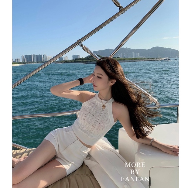 Porozi Áo croptop nữ dệt kim dáng ngắn không tay thời trang Hàn Quốc