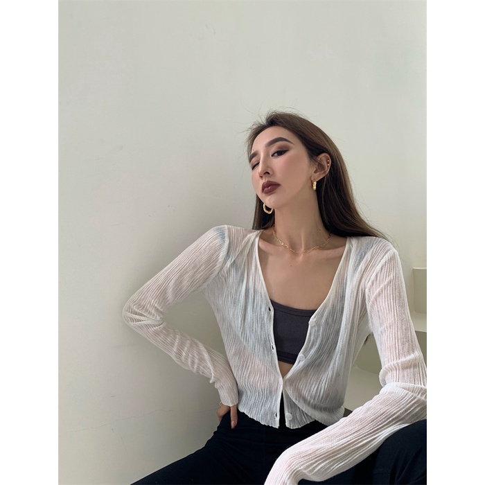 Porozi Áo sơ mi che nắng mỏng cổ chữ V tay dài thời trang Hàn Quốc dành cho nữ