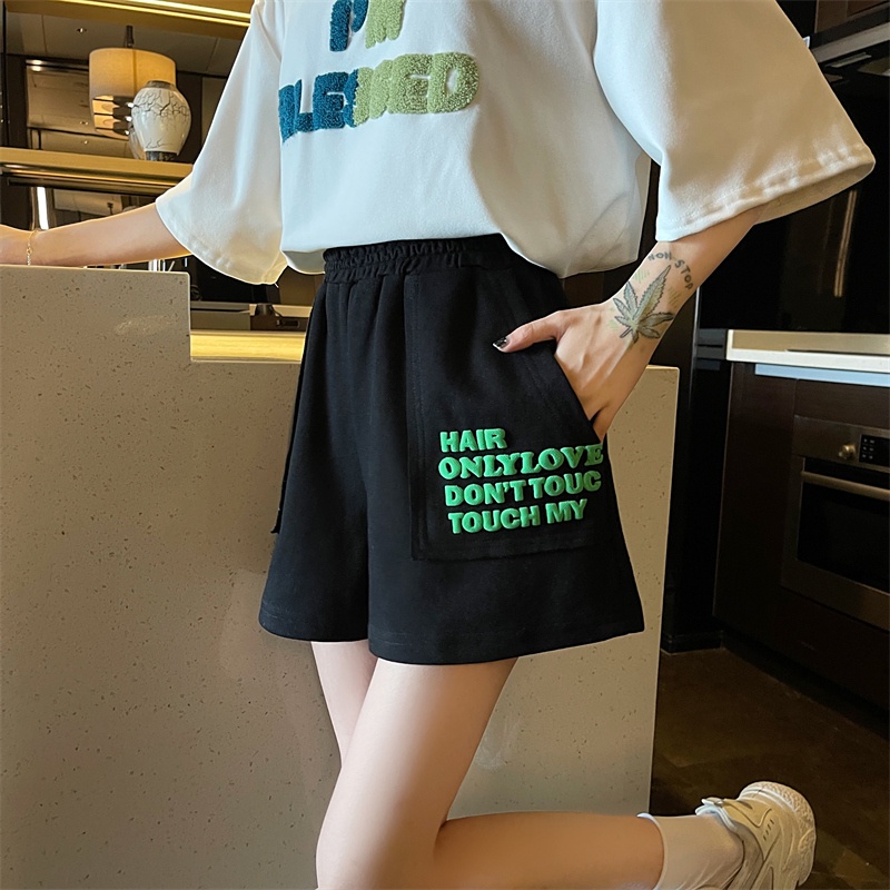 Porozi Quần ngắn ống rộng Phối Túi Lớn Có 3 Màu Phong Cách Hàn Quốc