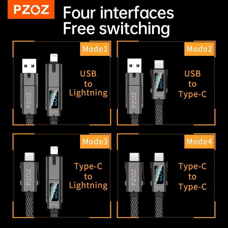 Pzoz Dây Cáp Sạc Nhanh 4 Trong 1 60w pd usb c Màn Hình Kỹ Thuật Số Cho iphone 15 14 13 12 pro max macbook ipad usb type c