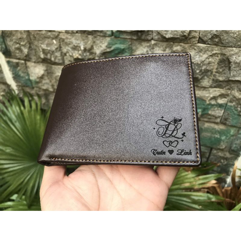 Quà tặng - Ví da bò nam khắc Chữ Lồng theo yêu cầu