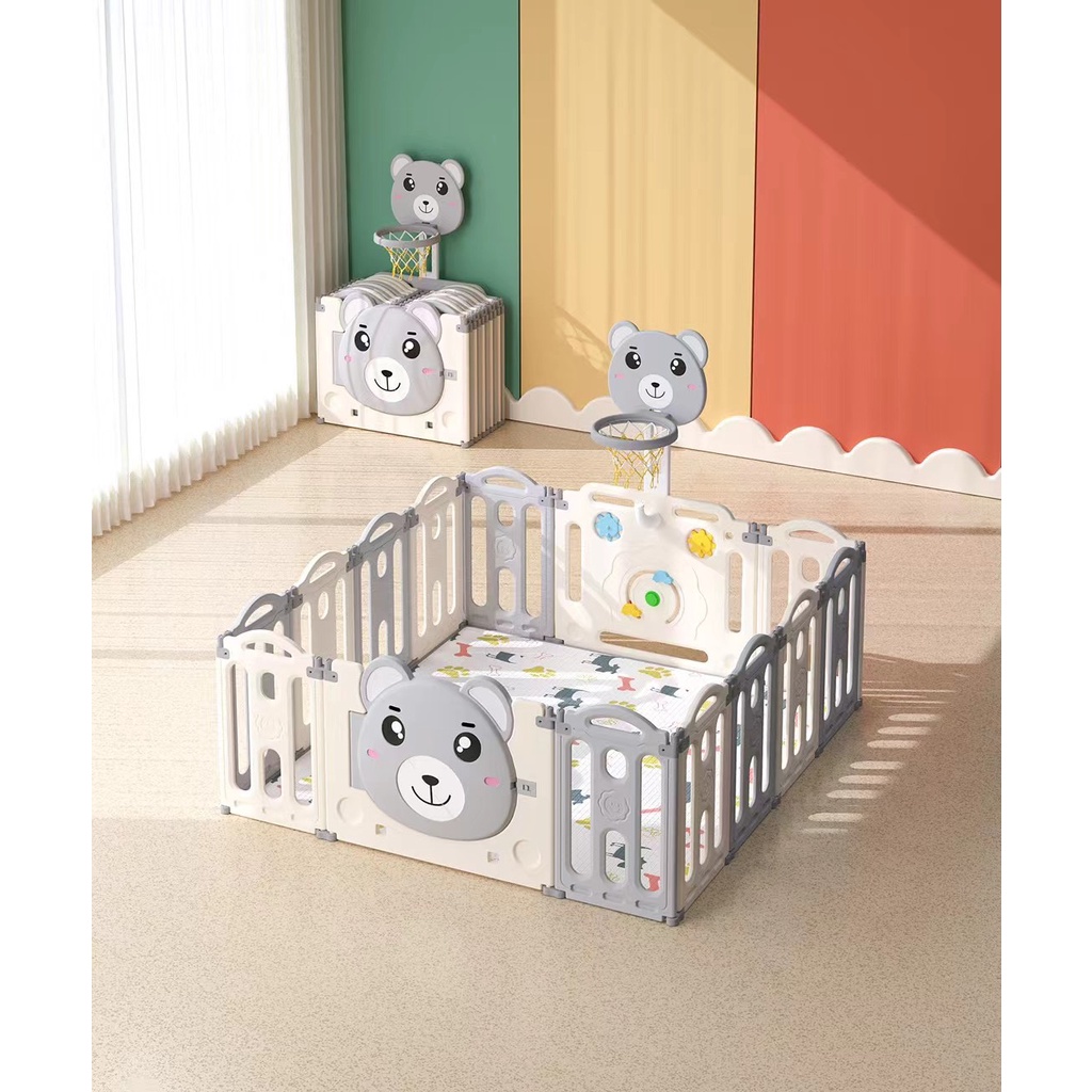 Quây Cũi Nhựa MOMMYKIDS MINH CHÂU Gấp Gọn Mẫu Gấu Tặng kèm 100 quả bóng nhựa, 1 thảm lót và cột chơi bóng rổ