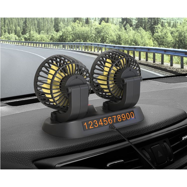Quạt Đôi Mini Làm Mát Ô Tô Tích hợp bảng số điện thoại Xoay 360 Độ Dùng Điện Loại cao cấp
