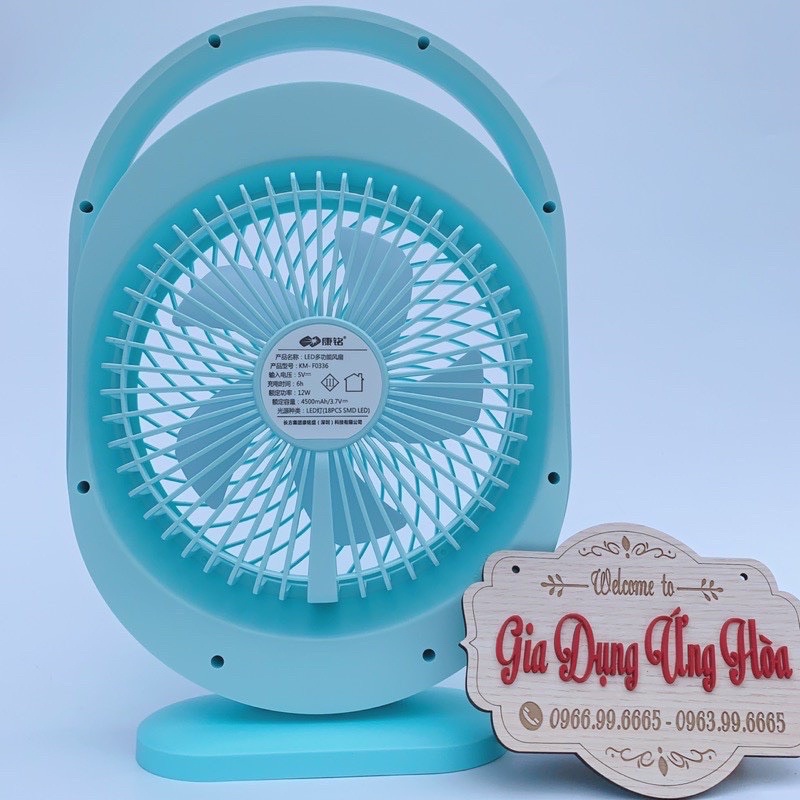 QUẠT SẠC TÍCH ĐIỆN CÓ ĐÈN LED KM F0336-GIÁ TỐT