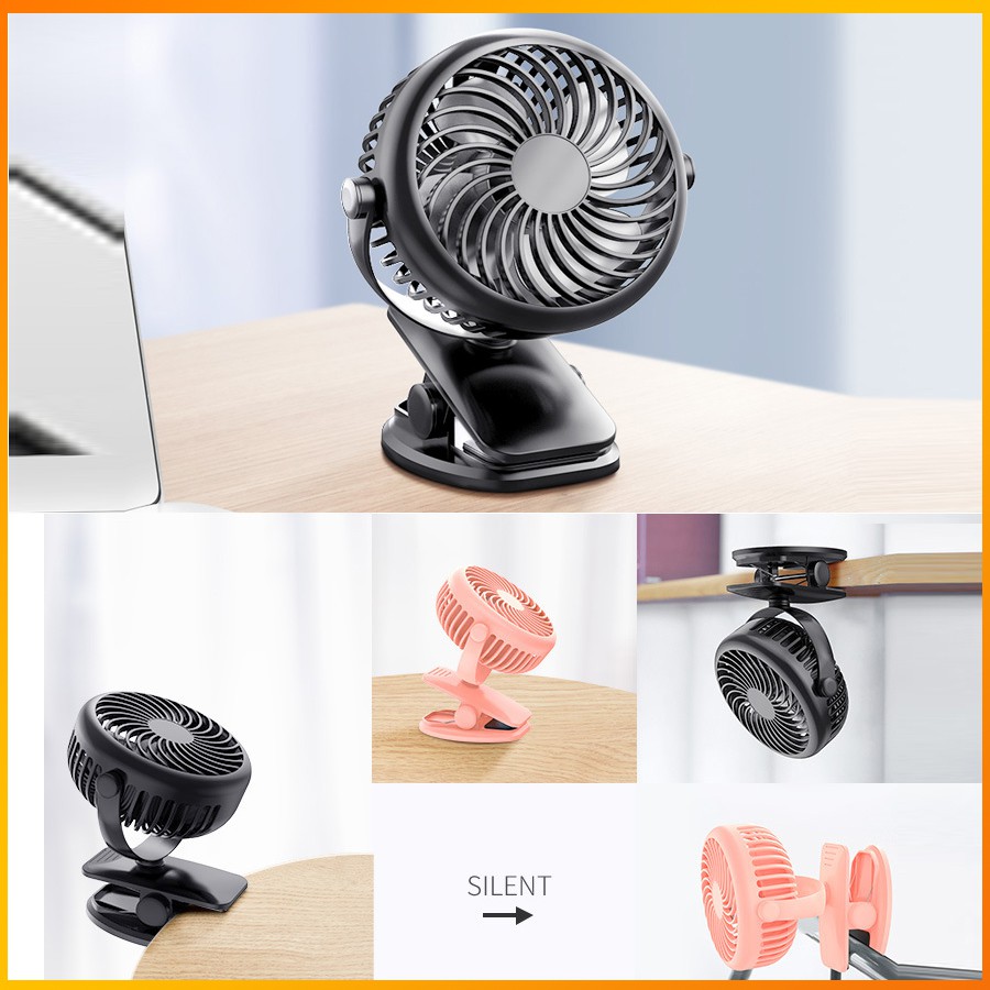 Quạt tích điện mini cầm tay để bàn - Mini fan quạt cho bé dùng pin tối đa đến 15h kẹp xoay 720 độ - Mianz Store