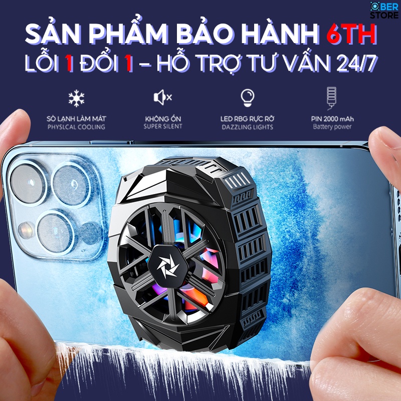 Quạt tản nhiệt điện thoại sò lạnh Ber Shield SL03 pin 2000 mAh chơi game làm mát bằng chip bán dẫn IOS Android led RGB