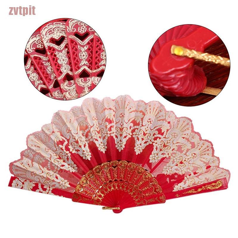 Quạt Xếp Cầm Tay Bằng Vải Lụa Phong Cách Trung Hoa Trang Trí Tiệc Cưới