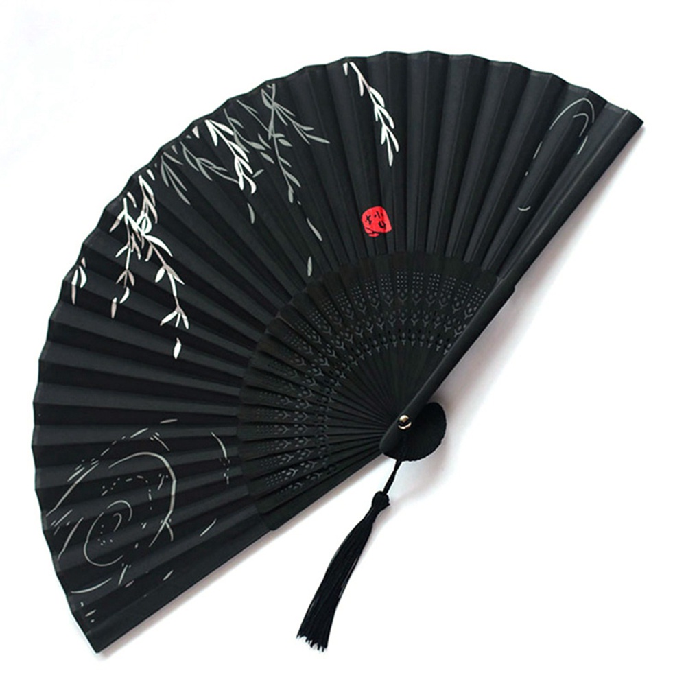 Quạt Xếp Cầm Tay Bằng Tre Chống Biến Dạng In Họa Tiết Hoa Phối Tua Rua Phong Cách Trung Hoa Độc Đáo