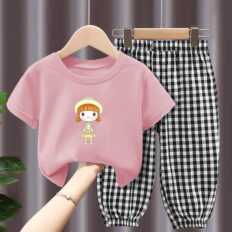 Set Áo Thun Tay Ngắn + Quần Dài Phong Cách Mùa Hè Mới Cho Bé Gái 3-5 - 8-10 - 12-13 Tuổi
