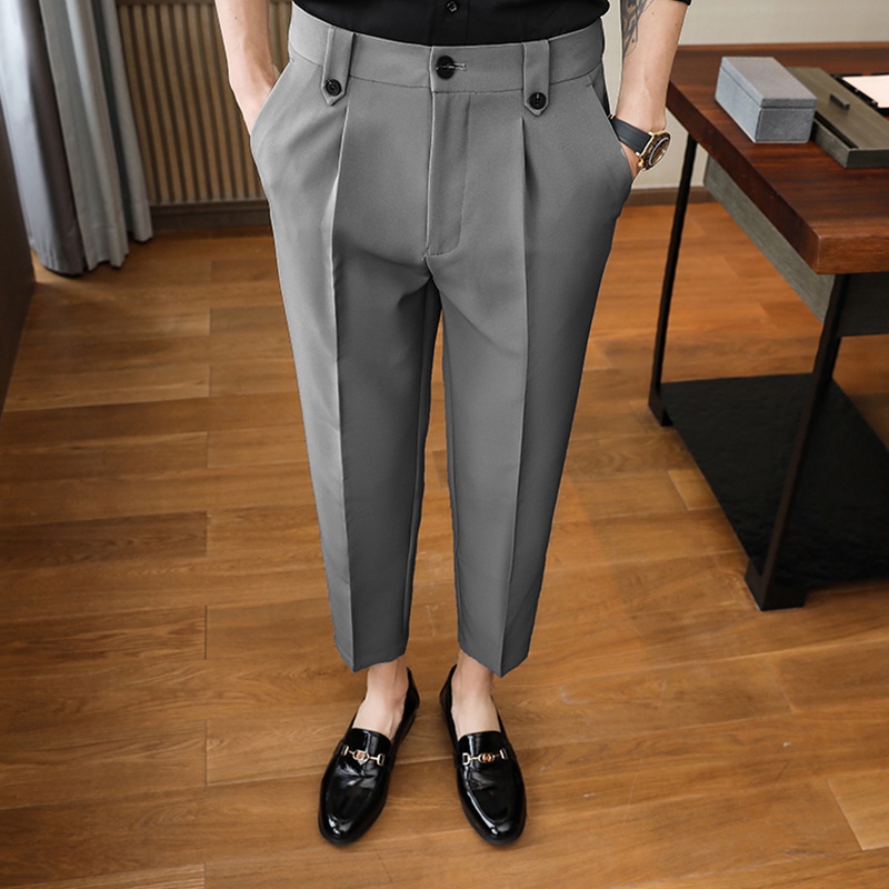 Quần baggy nam ống rộng vải lụa hàn co giãn, không nhăn không xù loại quần tây âu Premium thời trang