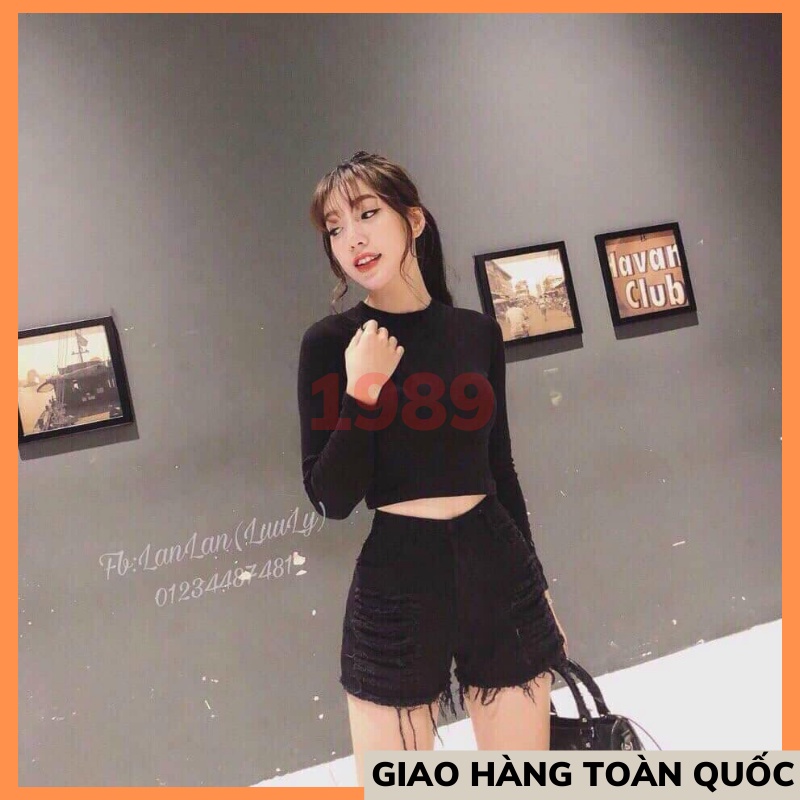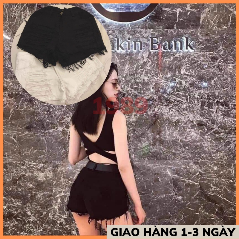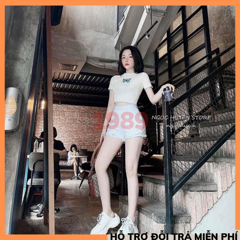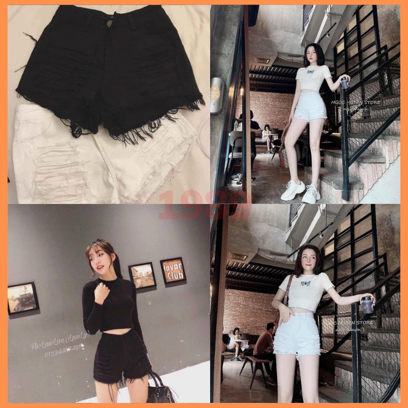 Quần đùi bò nữ l - Quần short bò nữ cạp cao gen bụng 2 màu đen trắng MAY1989_2