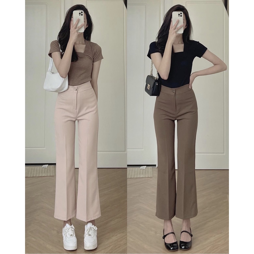 Quần ống loe cạp cao lưng cao chất tuyết mưa thời trang công sở hàn quốc