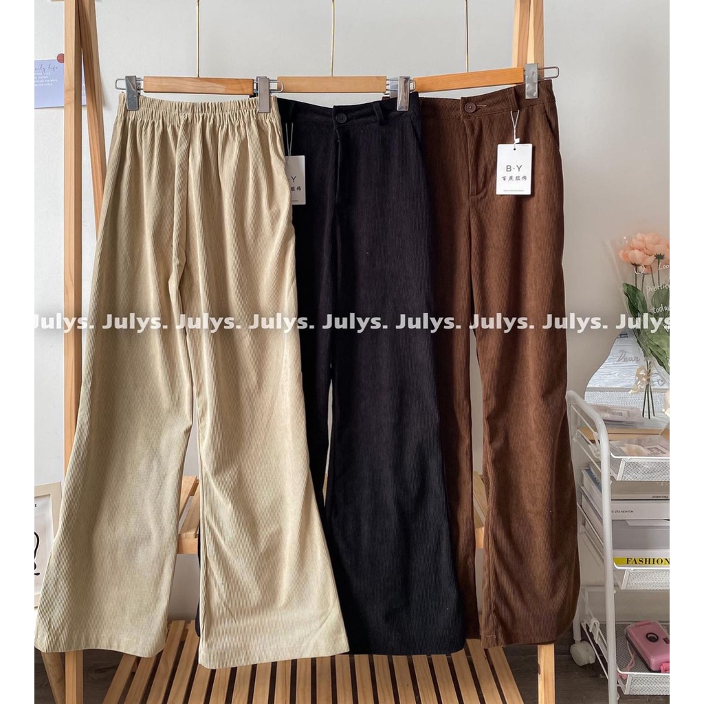 Quần ống loe nữ chất liệu nhung tăm cạp chun trẻ trung cá tính