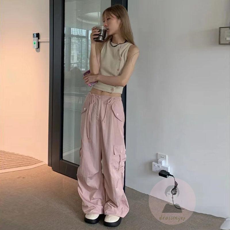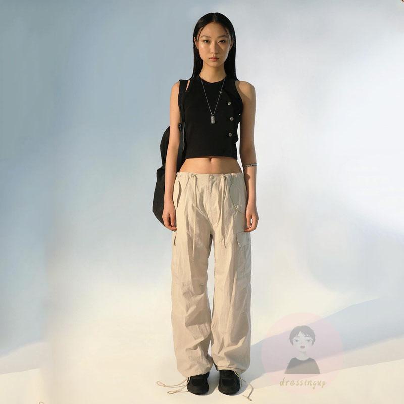 Quần Dài Ống Rộng Lưng Thấp Phối Dây Rút Phong Cách Cổ Điển Thời Trang Đường Phố Cho Nữ Y2K