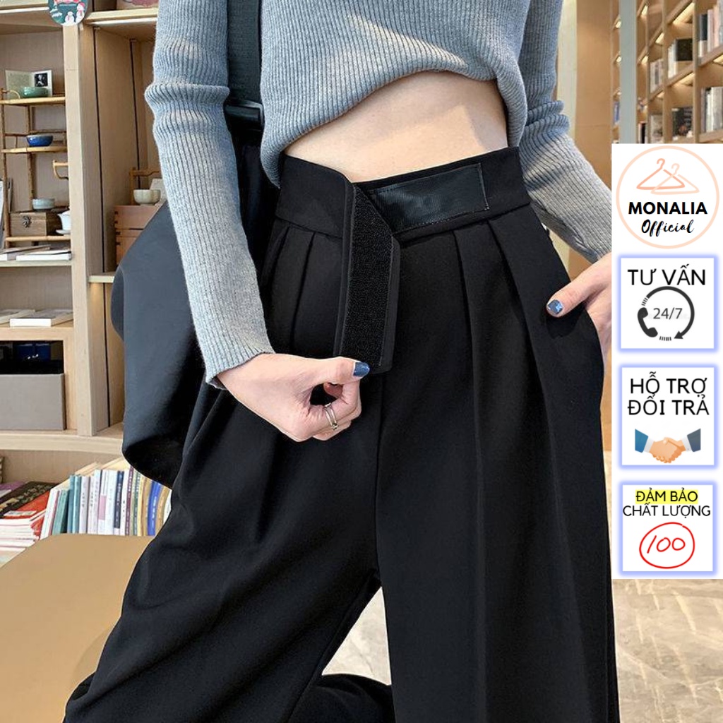Quần ống rộng MONALIA lưng cạp cao ống suông vải nữ dài culottes xuông màu đen , nâu , xám