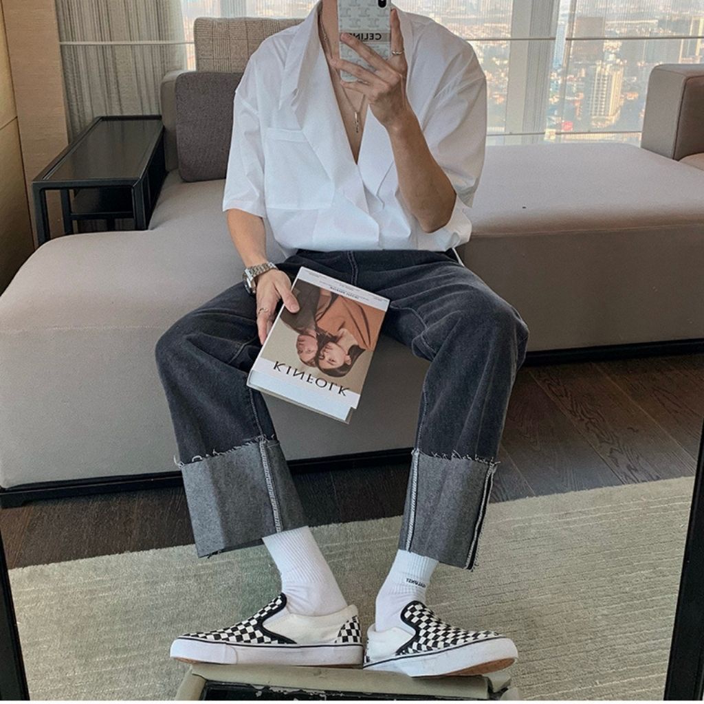 Quần ống rộng Tunoma quần bò ống suông sắn gấu unisex phong cách Hàn quốc QB01